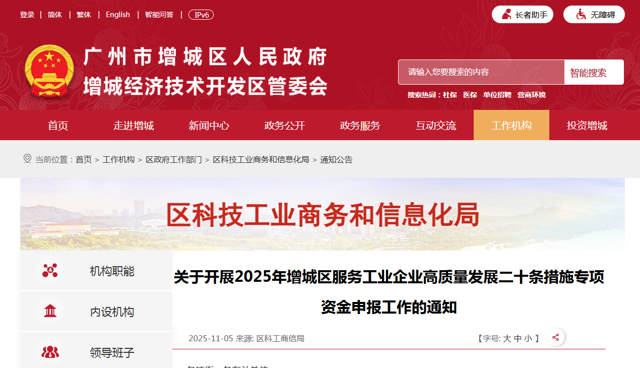 为强化政策扶持,优化发展环境,纾解企业经营压力,激发市场主体活力,进一步巩固工业经济增长势头,确保工业经济运行在合理区间,根据《广州市增城区人民政府办公室关于印发增城区服务工业企业高质量发展二十条措施的通知》(增府办规〔2023〕3号),现开展2025年增城区服务工业企业高质量发展二十条措施专项资金申报工作,有关事项通知如下: