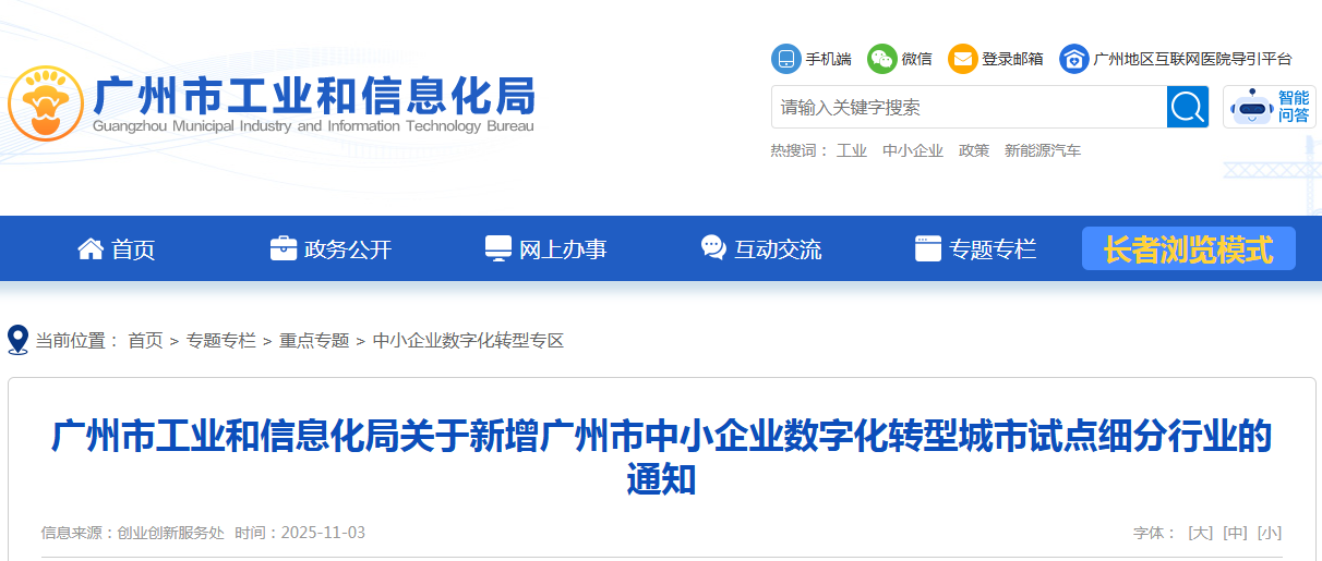 广州市工业和信息化局关于新增广州市中小企业数字化转型城市试点细分行业的通知