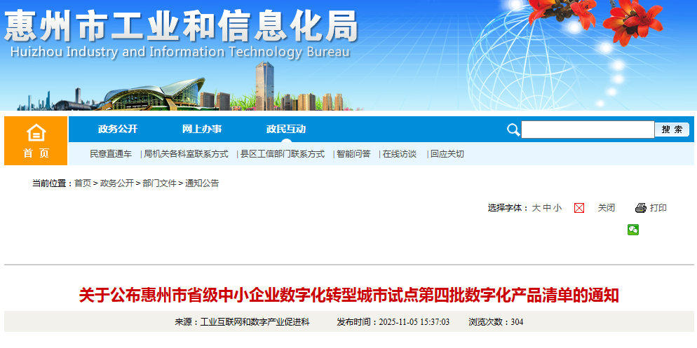 关于公布惠州市省级中小企业数字化转型城市试点第四批数字化产品清单的通知