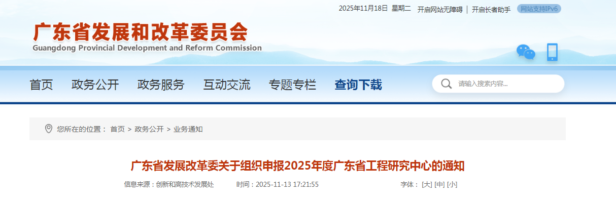广东省发展改革委关于组织申报2025年度广东省工程研究中心的通知