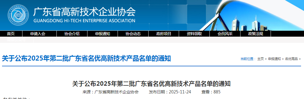 关于公布2025年第二批广东省名优高新技术产品名单的通知