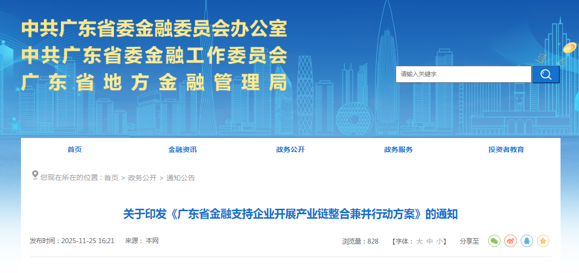 关于印发《广东省金融支持企业开展产业链整合兼并行动方案》的通知