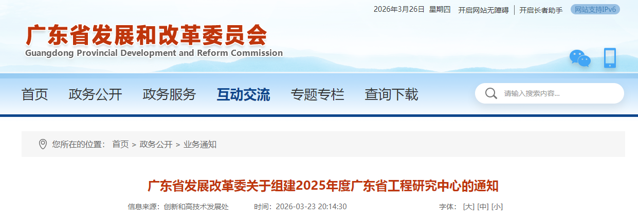 广东省发展改革委关于组建2025年度广东省工程研究中心的通知