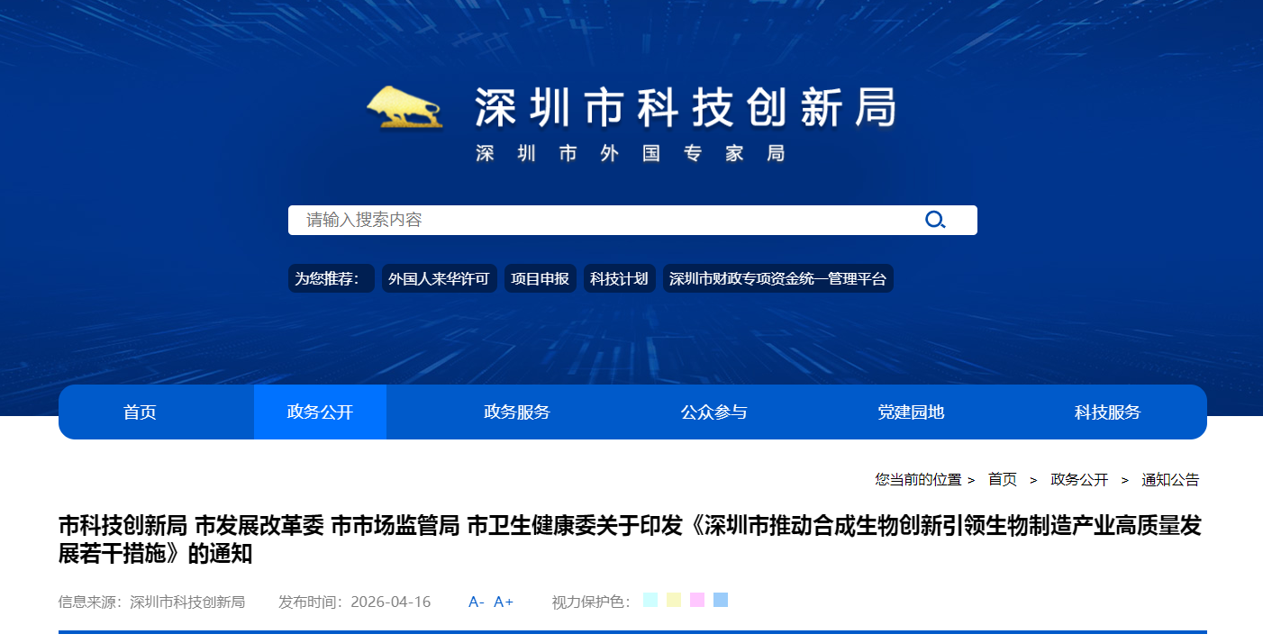 深圳市科技创新局 深圳市发展改革委 深圳市市场监管局 市卫生健康委关于印发《深圳市推动合成生物创新引领生物制造产业高质量发展若干措施》的通知