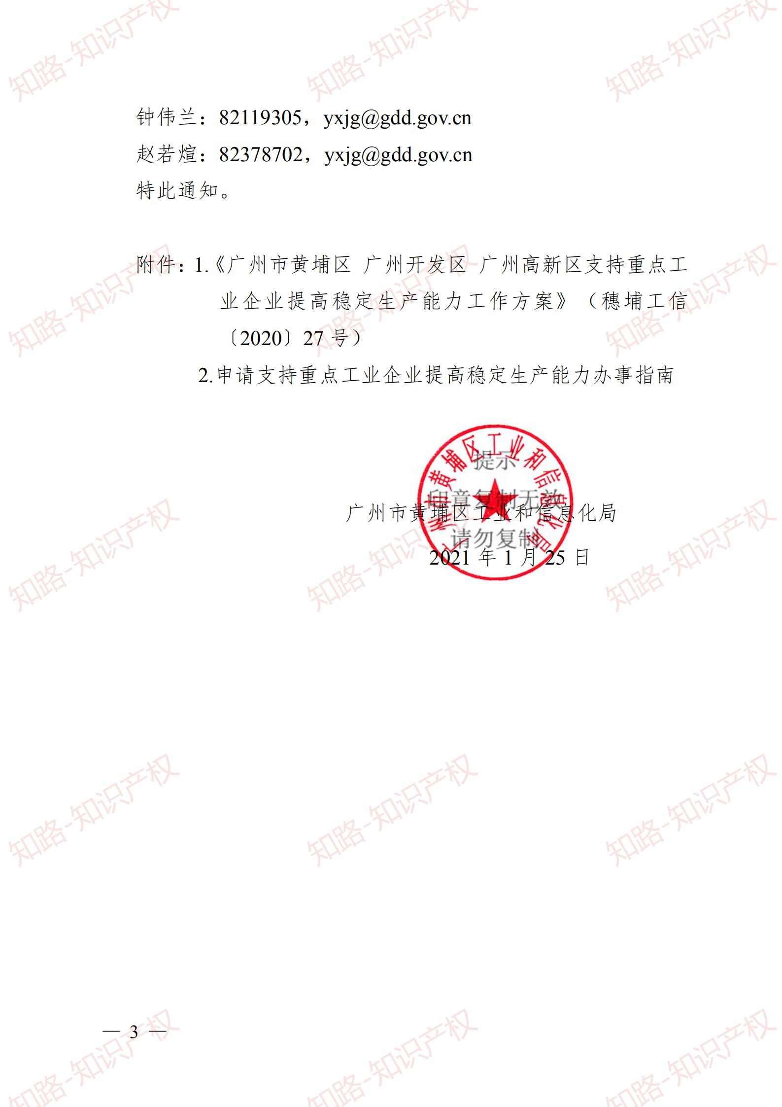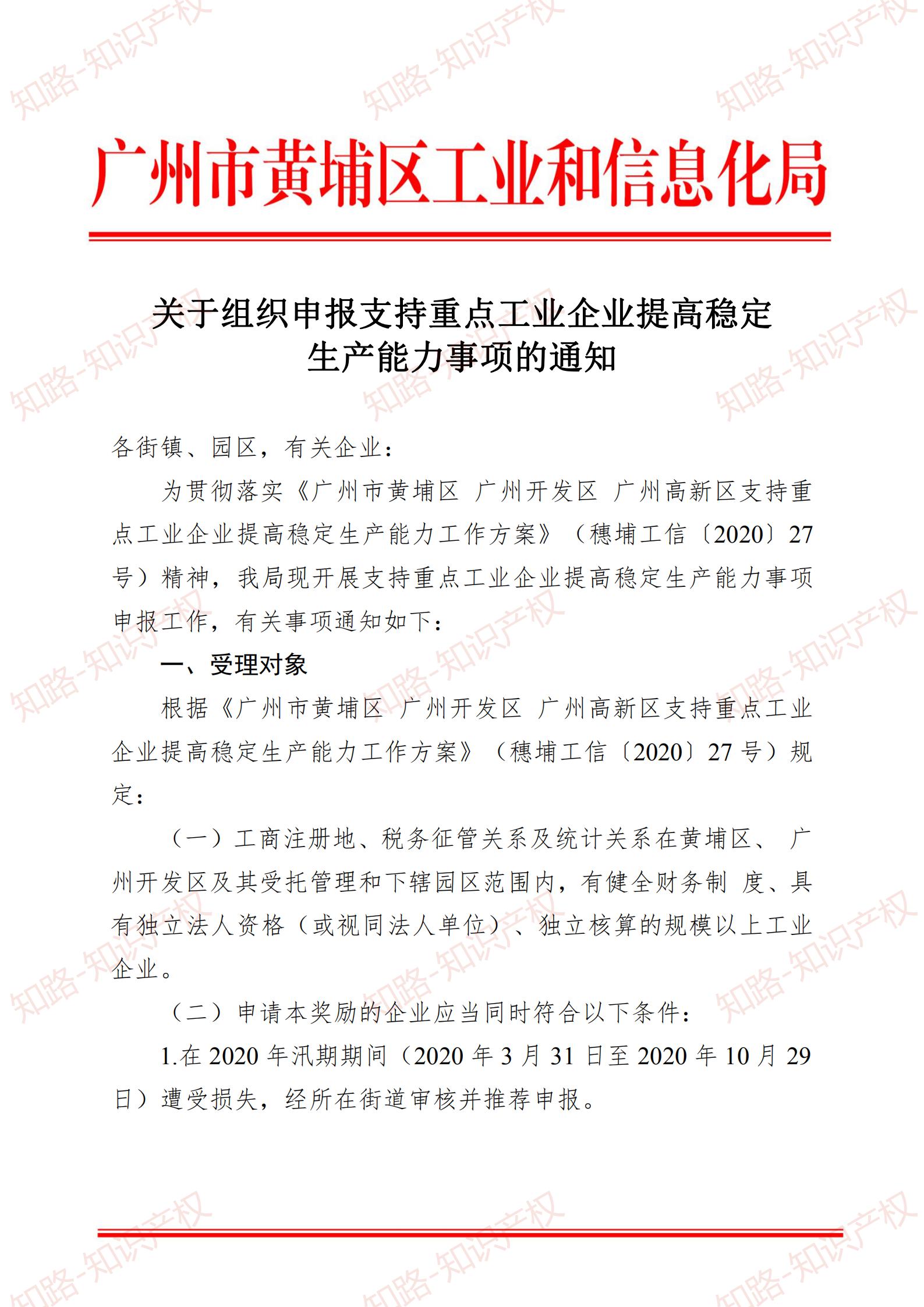 广州市黄埔区工业和信息化局关于组织申报支持重点工业企业提高稳定生产能力事项的通知