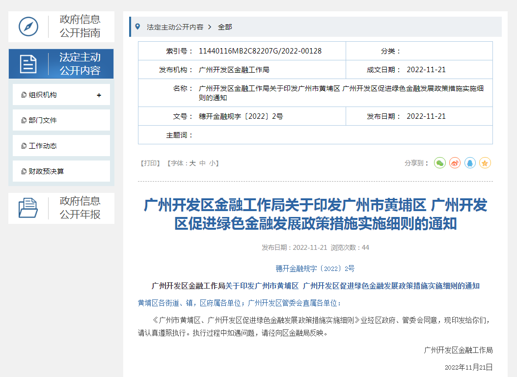 广州市黄埔区 广州开发区促进绿色金融发展政策措施实施细则