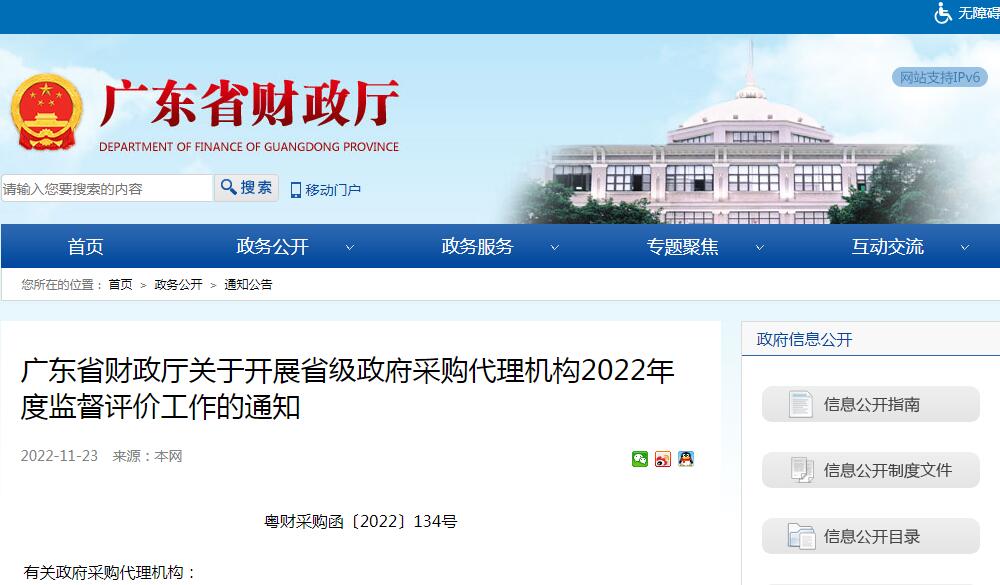 广东省财政厅关于开展省级政府采购代理机构2022年度监督评价工作的通知