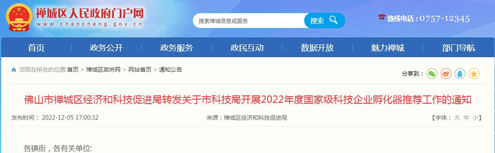 根据《佛山市科学技术局关于开展2022年度国家级科技企业孵化器推荐工作的通知》(佛科通〔2022〕15号),开展2022年度国家级科技企业孵化器申报推荐工作,通知如下: