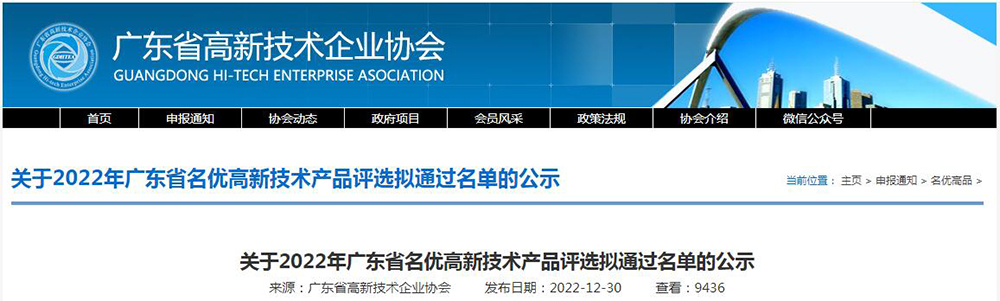 关于2022年广东省名优高新技术产品评选拟通过名单的公示