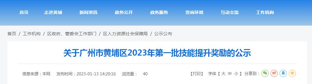 关于广州市黄埔区2023年第一批技能提升奖励的公示