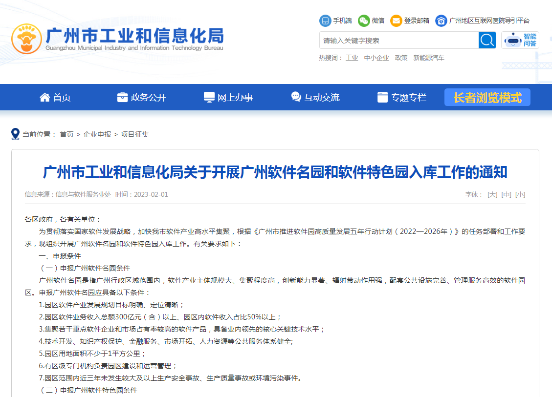 为贯彻落实国家软件发展战略,加快我市软件产业高水平集聚,根据《广州市推进软件园高质量发展五年行动计划(2022—2026年)》的任务部署和工作要求,现组织开展广州软件名园和软件特色园入库工作。有关要求如下: