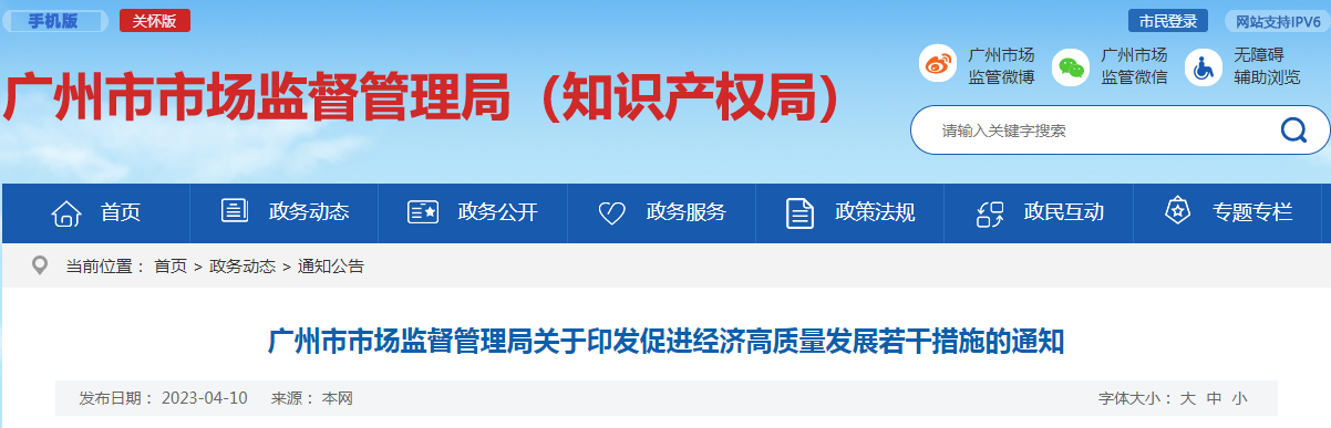 广州市市场监督管理局关于印发促进经济高质量发展若干措施的通知