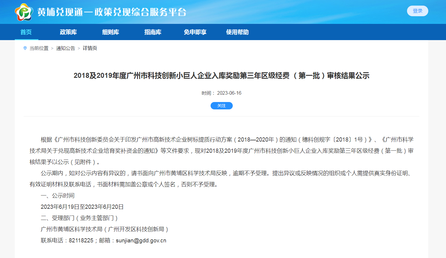 公示期内,如对公示内容有异议的,请书面向广州市黄埔区科学技术局反映,逾期不予受理。提出异议或反映情况的组织或个人需提供真实身份证明、有效证明材料及联系电话,书面材料需加盖公章或个人签名,否则不予受理。
