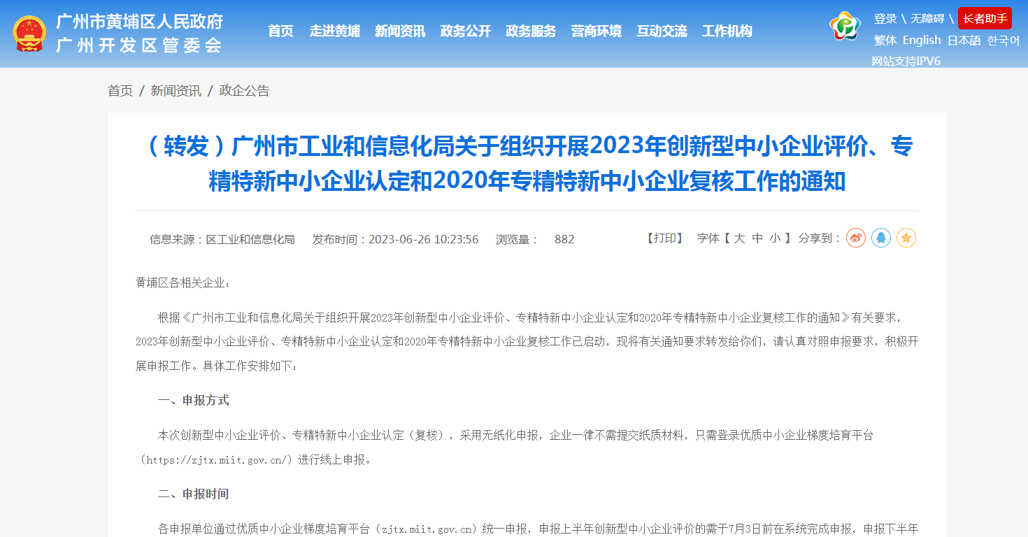 湾企服政策指引:根据《广州市工业和信息化局关于组织开展2023年创新型中小企业评价、专精特新中小企业认定和2020年专精特新中小企业复核工作的通知》有关要求,2023年创新型中小企业评价、专精特新中小企业认定和2020年专精特新中小企业复核工作已启动,现将有关通知要求转发给你们,请认真对照申报要求,积极开展申报工作。