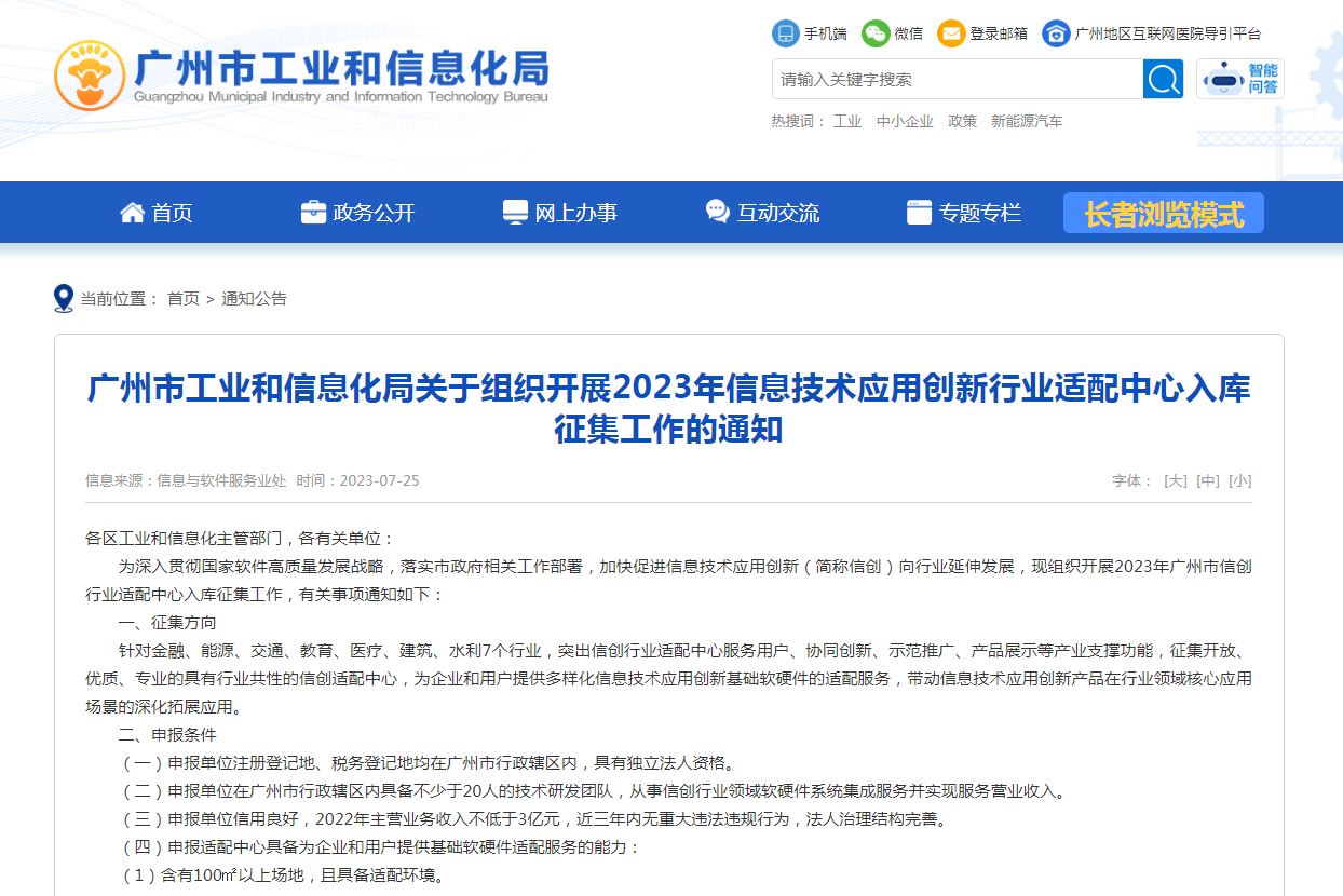 广州市工业和信息化局关于组织开展2023年信息技术应用创新行业适配中心入库征集工作的通知