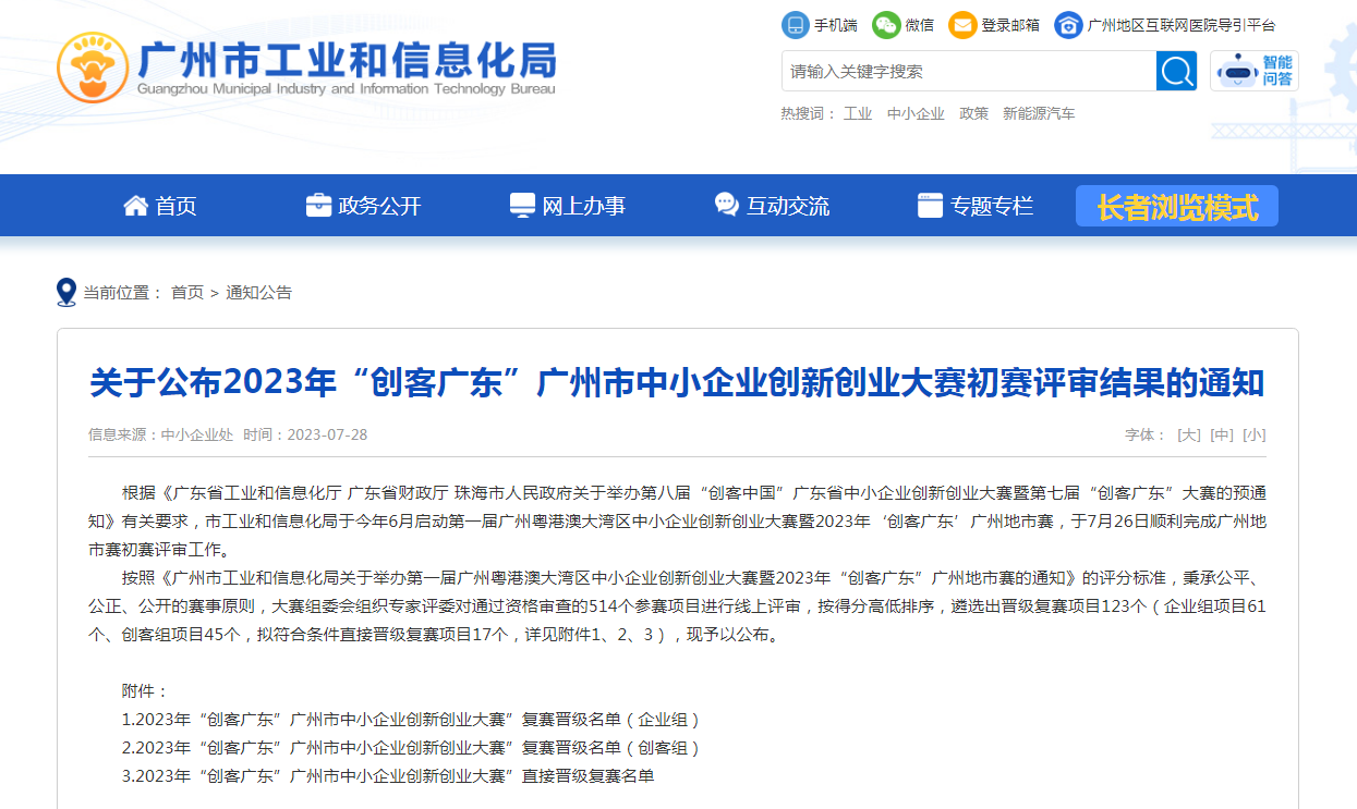 关于公布2023年“创客广东”广州市中小企业创新创业大赛初赛评审结果的通知