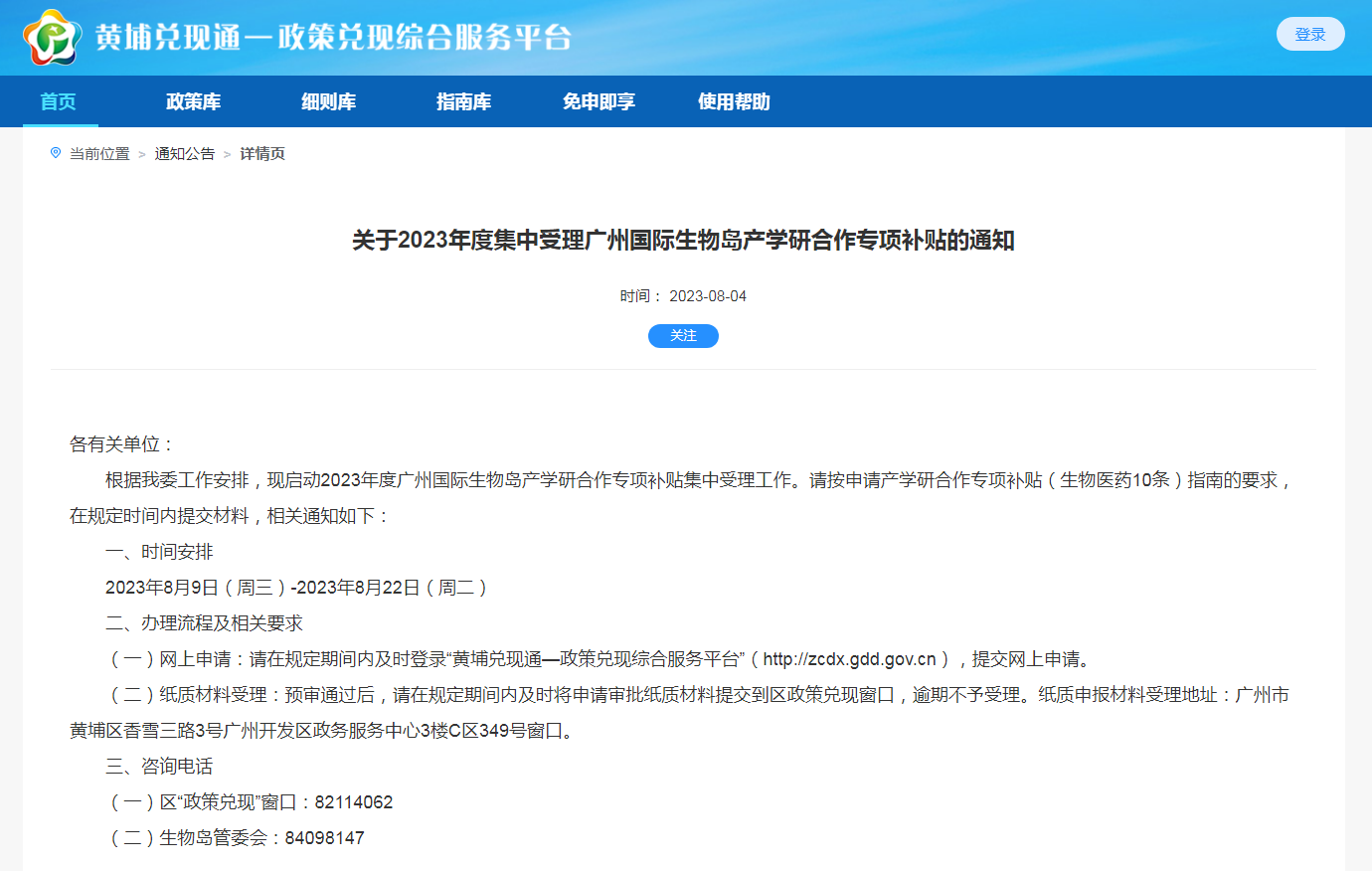 湾企服政策指引:根据我委工作安排,现启动2023年度广州国际生物岛产学研合作专项补贴集中受理工作。请按申请产学研合作专项补贴(生物医药10条)指南的要求,在规定时间内提交材料。