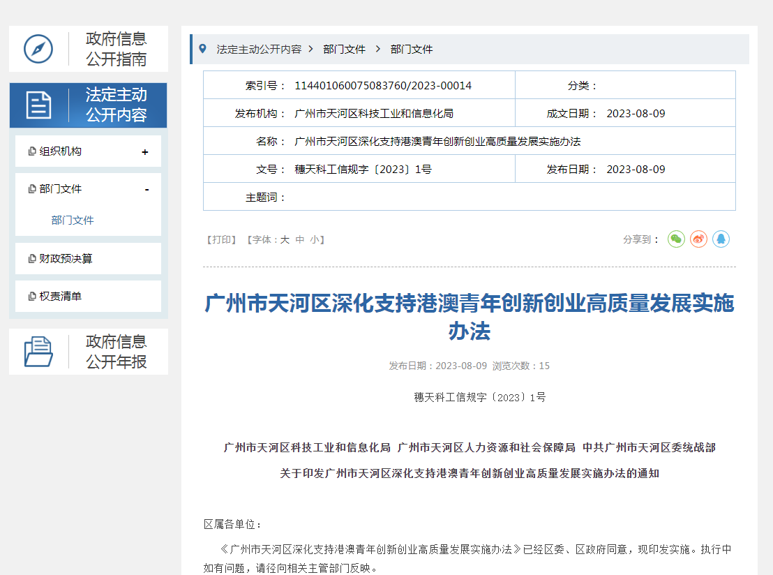 湾企服政策指引: 《广州市天河区深化支持港澳青年创新创业高质量发展实施办法》已经区委、区政府同意,现印发实施。执行中如有问题,请径向相关主管部门反映。