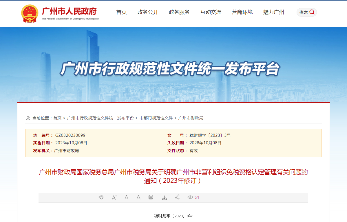 七、本通知自发布日起施行,有效期5年,有效期届满,根据实施情况评估修订。《广州市财政局 国家税务总局广州市税务局关于明确广州市非营利组织免税资格认定管理有关问题的通知》(穗财规字〔2018〕3号)同时废止。