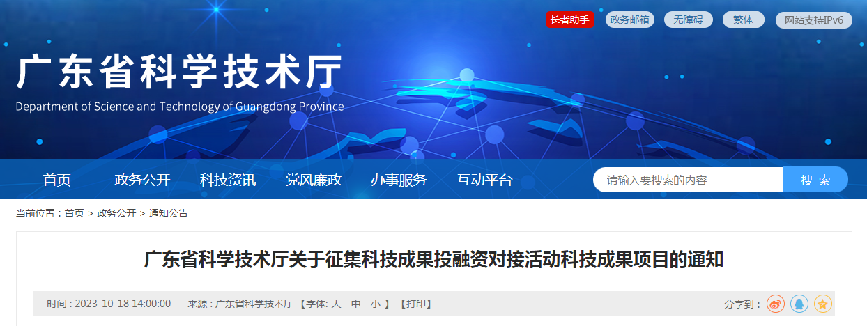 广东省科学技术厅关于征集科技成果投融资对接活动科技成果项目的通知