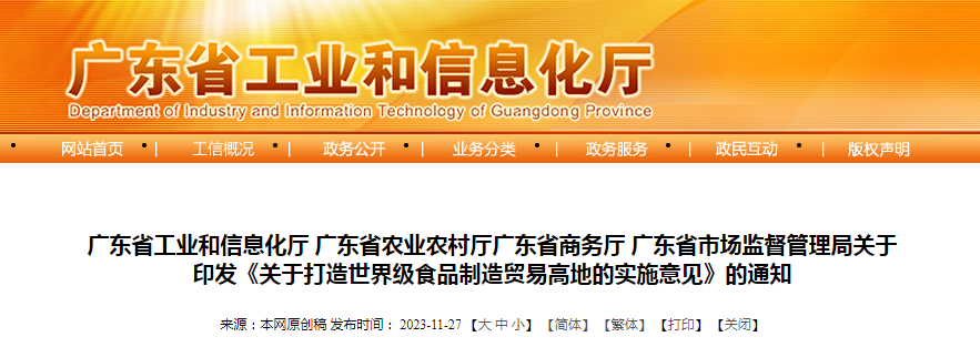 广东省工业和信息化厅 广东省农业农村厅广东省商务厅 广东省市场监督管理局关于印发《关于打造世界级食品制造贸易高地的实施意见》的通知