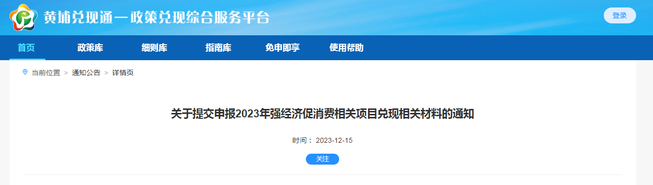请符合要求的商贸业企业于12月15日至12月18日登录“黄埔兑现通-政策兑现综合服务平台”(https://zcdx.gdd.gov.cn/wedPc/),按照“申请指南”提交兑现事项材料。请在上述时间内到政策兑现窗口提交纸质材料,逾期不予受理。