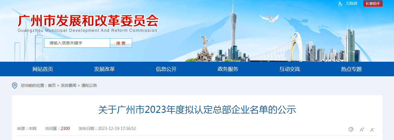 湾企服政策指引:根据《广州市人民政府办公厅关于印发广州市促进总部经济发展若干措施的通知》(穗府办规〔2023〕9号)的要求,经组织申报、初审和复审等程序,现将广州市2023年度拟认定总部企业名单予以公示,公示期7天。对公示有异议的,请于公示期内以实名、书面形式向广州市发展和改革委员会反映。