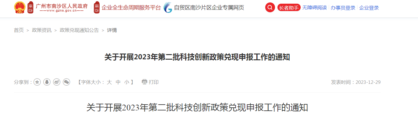 根据《广州南沙新区(自贸片区)促进科技创新产业发展扶持办法实施细则(修订稿)》(穗南开科规〔2020〕1号)、《关于延续实施穗南开科规字〔2020〕1号文件的通知》(穗南开科规字〔2021〕1号)、《支持南沙科学城建设粤港澳大湾区综合性国家科学中心主要承载区若干政策措施》(穗南开管办规〔2021〕1号)、《广州南沙新区(自贸片区)集聚人才创新发展若干措施实施细则》(穗南开人发规字〔2020〕2号)、《关于延续穗南开人发规字〔2020〕2号文件的通知》(穗南开人发规字〔2021〕2号)、《南沙区科技型中小企业信贷风险损失补偿资金池管理办法》(穗南科规字〔2021〕1号),我局现开展2023年第二批科技创新政策兑现申报工作。现就有关事项通知如下:
