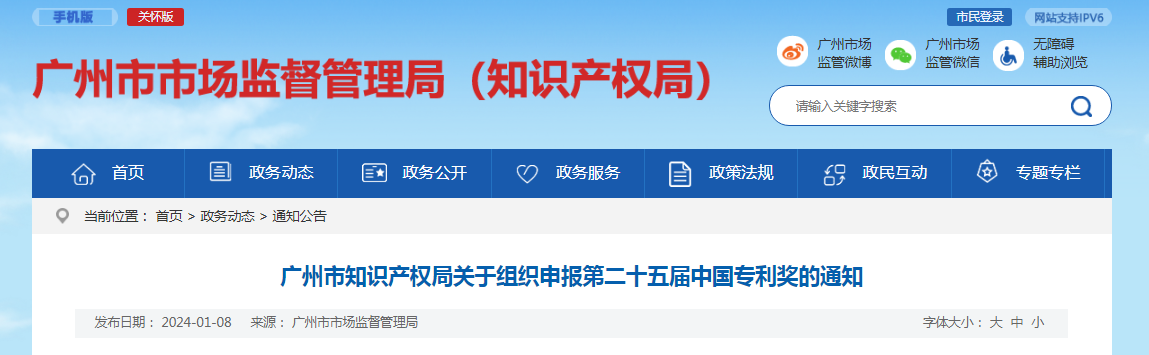 广州市知识产权局关于组织申报第二十五届中国专利奖的通知
