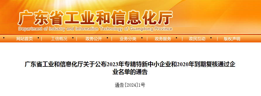 广东省工业和信息化厅关于公布2023年专精特新中小企业和2020年到期复核通过企业名单的通告