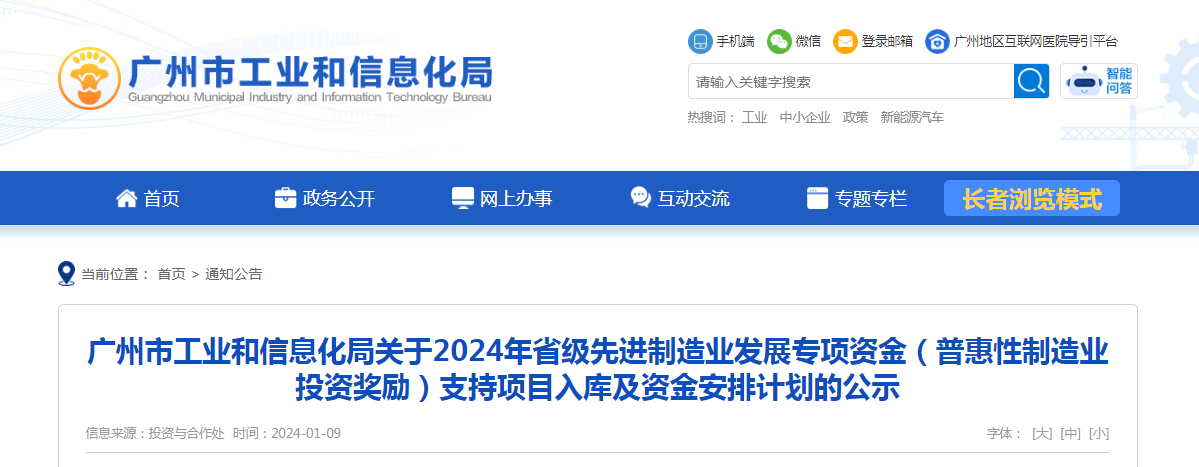 广州市工业和信息化局关于2024年省级先进制造业发展专项资金(普惠性制造业投资奖励)支持项目入库及资金安排计划的公示