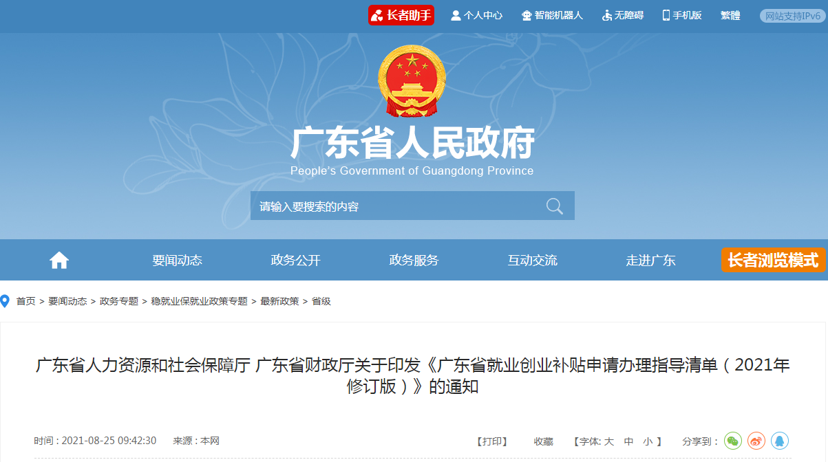 广东省人力资源和社会保障厅 广东省财政厅关于印发《广东省就业创业补贴申请办理指导清单(2021年修订版)》的通知