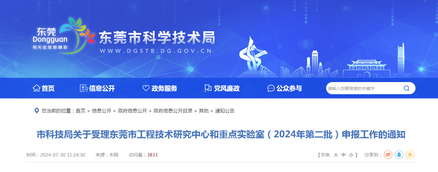 市科技局关于受理东莞市工程技术研究中心和重点实验室(2024年第二批)申报工作的通知