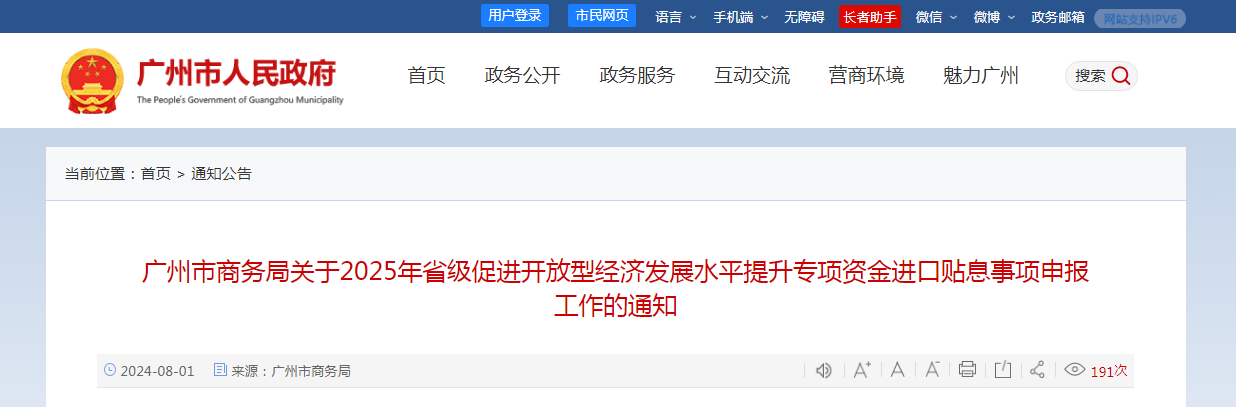广州市商务局关于2025年省级促进开放型经济发展水平提升专项资金进口贴息事项申报工作的通知