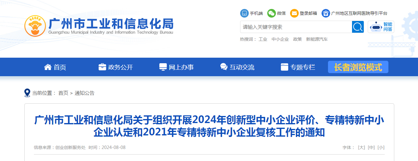 广州市工业和信息化局关于组织开展2024年创新型中小企业评价、专精特新中小企业认定和2021年专精特新中小企业复核工作的通知