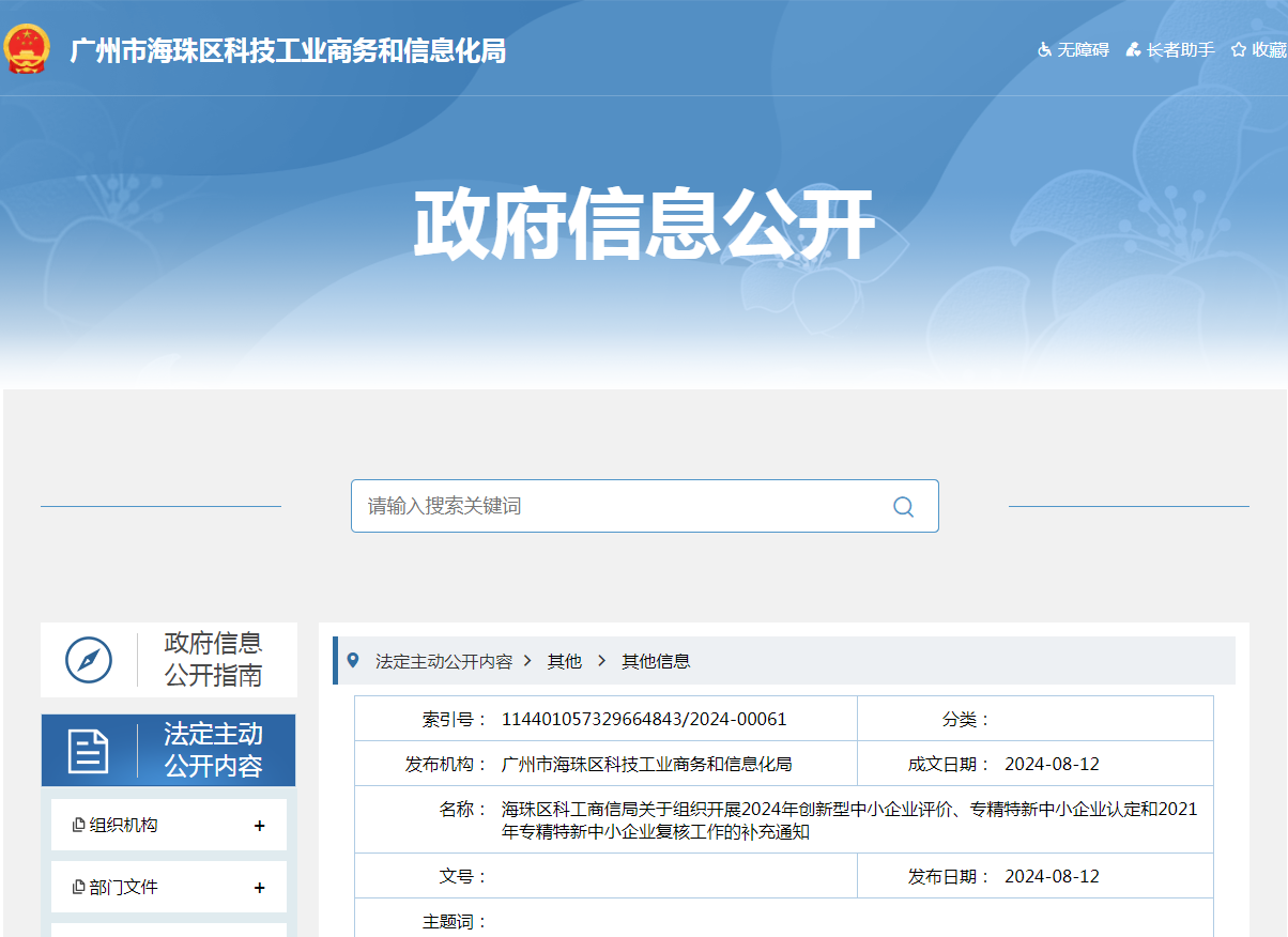 海珠区科工商信局关于组织开展2024年创新型中小企业评价、专精特新中小企业认定和2021年专精特新中小企业复核工作的补充通知