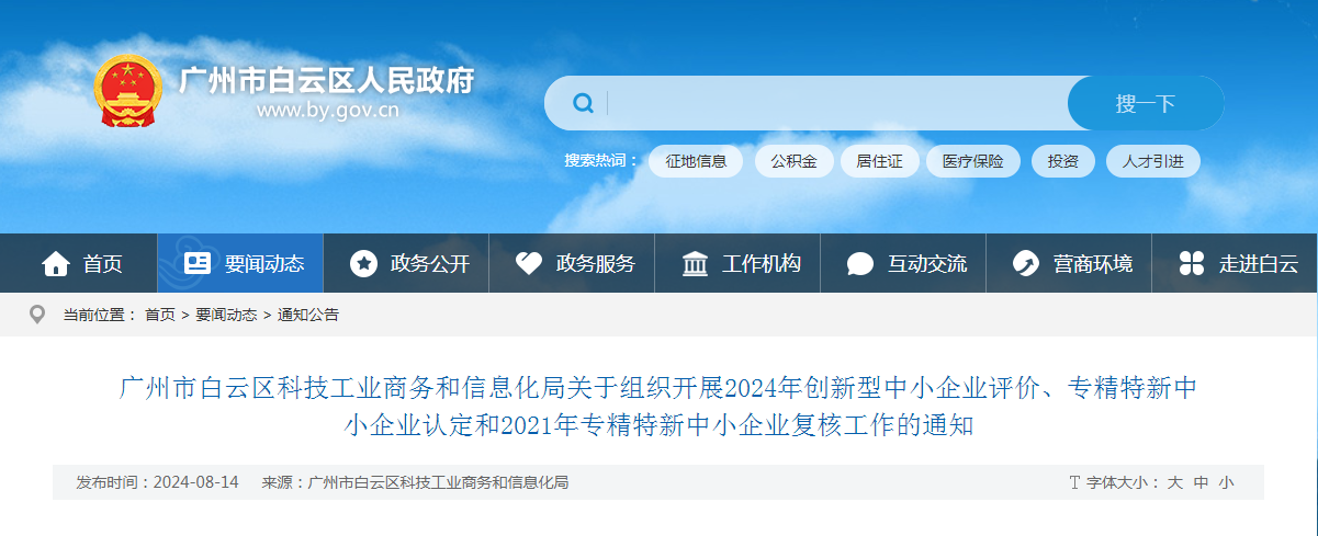 广州市白云区科技工业商务和信息化局关于组织开展2024年创新型中小企业评价、专精特新中小企业认定和2021年专精特新中小企业复核工作的通知