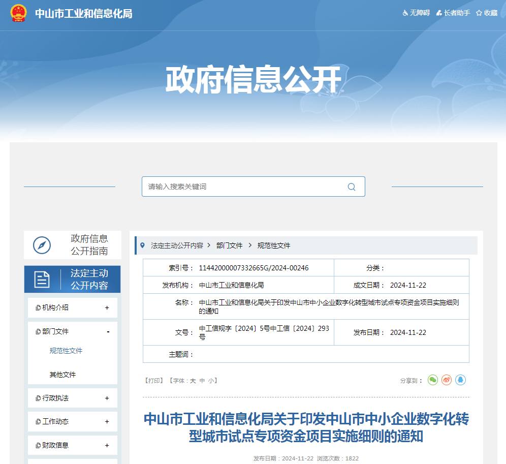 中山市工业和信息化局关于印发中山市中小企业数字化转型城市试点专项资金项目实施细则的通知