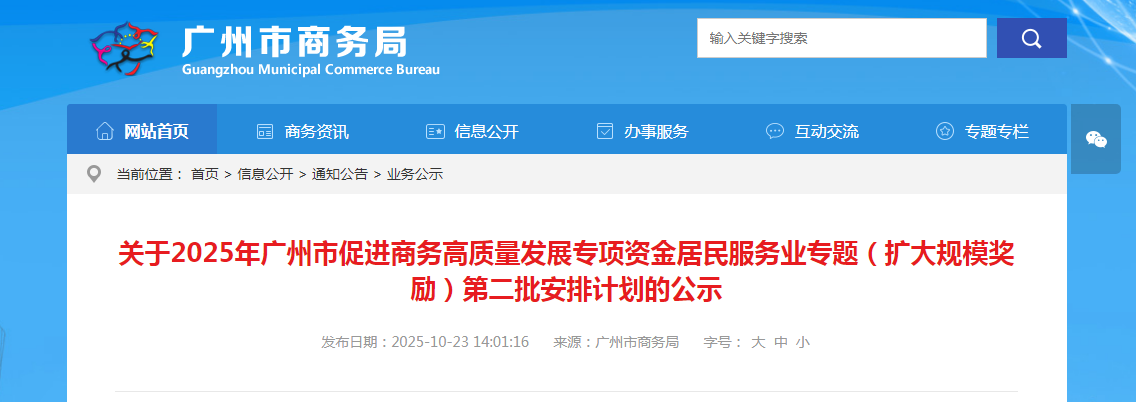 关于2025年广州市促进商务高质量发展专项资金居民服务业专题(扩大规模奖励)第二批安排计划的公示