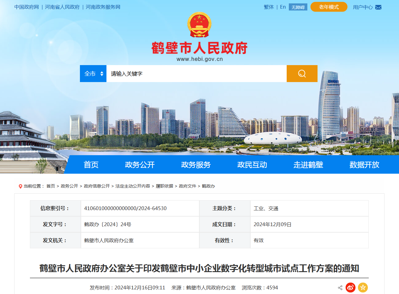 鹤壁市人民政府办公室关于印发鹤壁市中小企业数字化转型城市试点工作方案的通知