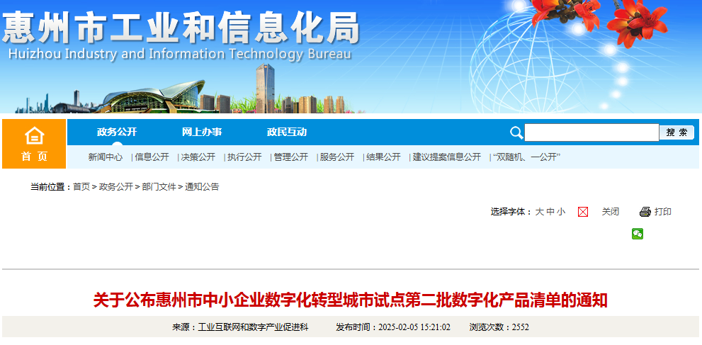 关于公布惠州市中小企业数字化转型城市试点第二批数字化产品清单的通知